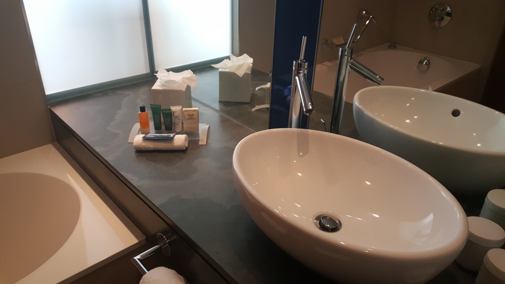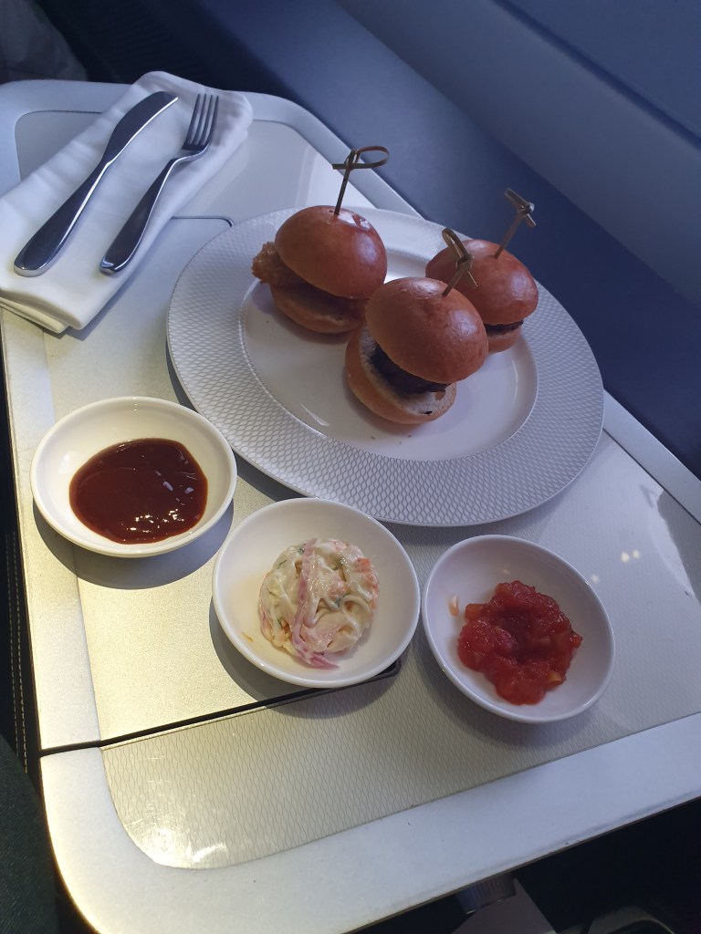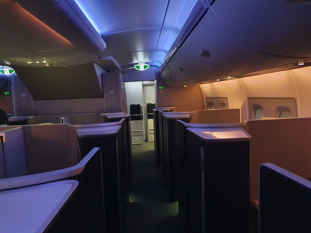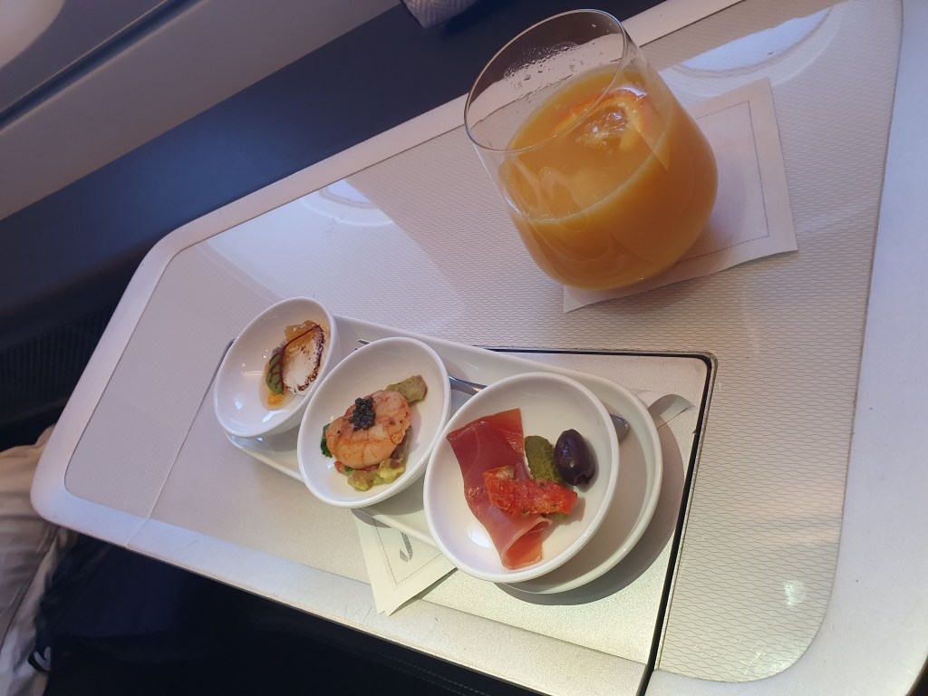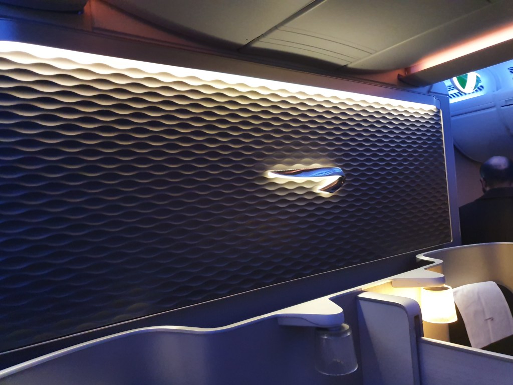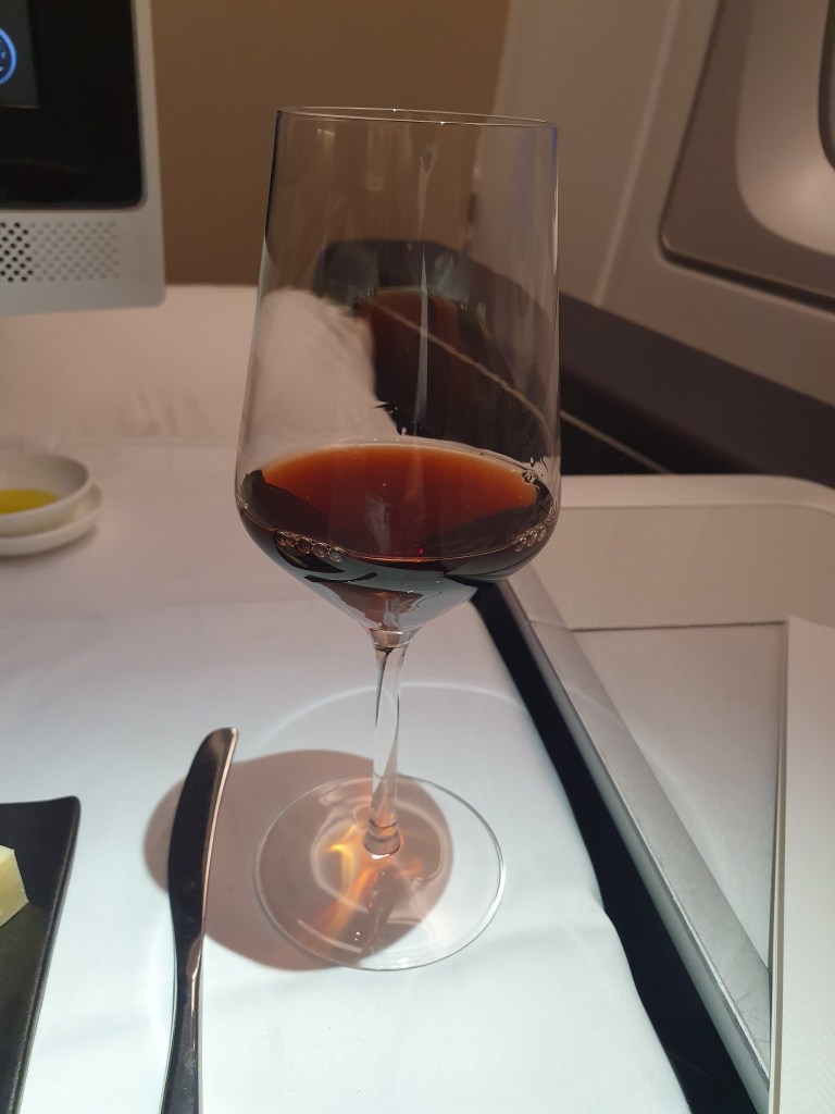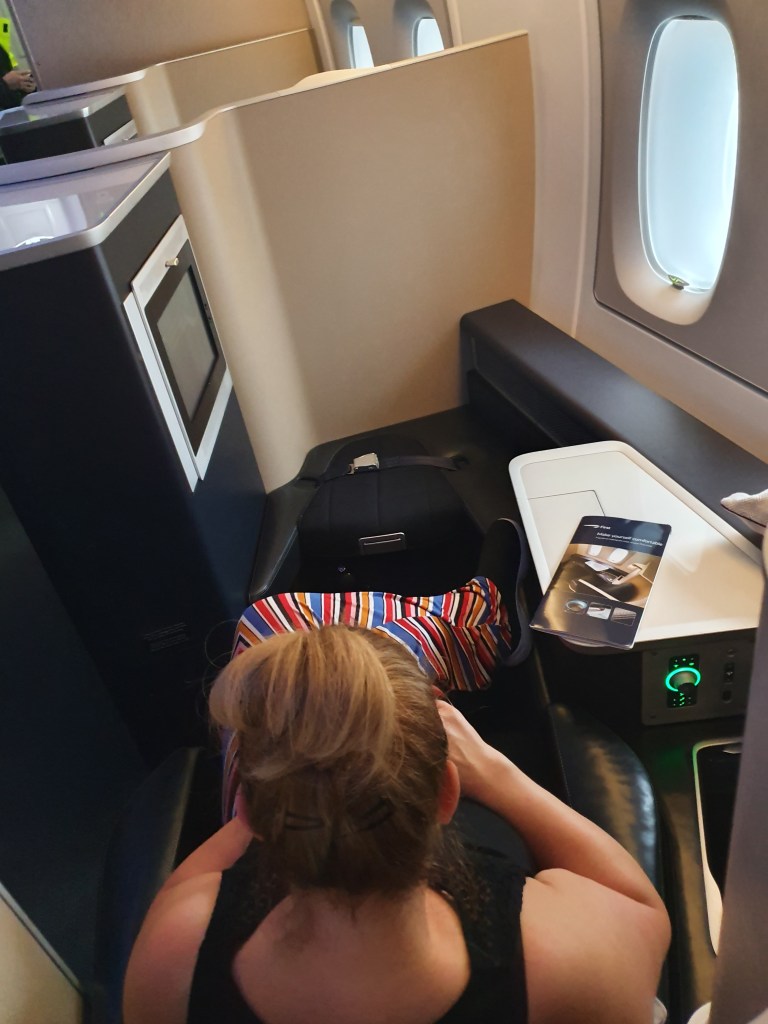 We flew to Heathrow before a quick visit to the First Class lounge before flying First class an a British Airways A380. At the time Storm Dennis was causing havoc and at least half of the flights that day were cancelled. Our cabin crew told us that if we didn’t kick back when we did, our flight would have been cancelled too. There was a little turbulence but that didn’t bother me.